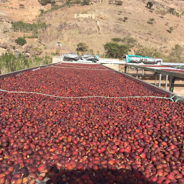 - The cherries are dried on specially designed beds under sunlight, elevated one and a half meters to ensure proper ventilation.